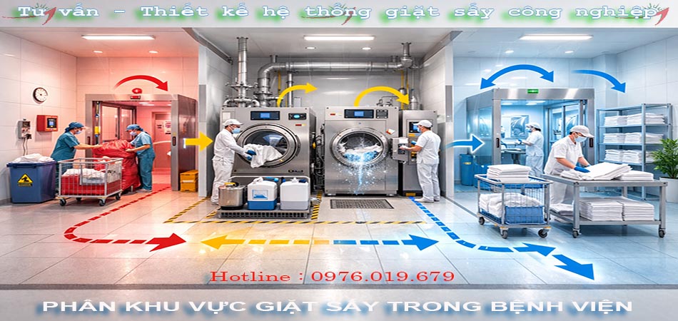 Trong môi trường bệnh viện – nơi sự sống và an toàn của con người được đặt lên hàng đầu – từng chi tiết nhỏ trong vận hành đều có thể ảnh hưởng trực tiếp đến sức khỏe bệnh nhân và nhân viên y tế. Một trong những hệ thống quan trọng nhưng thường bị xem nhẹ chính là hệ thống giặt sấy đồ vải. Ga trải giường, quần áo bệnh nhân, đồng phục nhân viên, khăn, rèm… đều là những vật dụng tiếp xúc trực tiếp với cơ thể và có nguy cơ mang theo vi khuẩn, virus, nấm mốc hay các tác nhân gây nhiễm khuẩn chéo. Vì vậy, việc chuẩn hóa hệ thống giặt sấy theo quy trình một chiều không chỉ là yêu cầu kỹ thuật, mà còn là tiêu chuẩn bắt buộc để đảm bảo kiểm soát nhiễm khuẩn trong bệnh viện hiện đại.