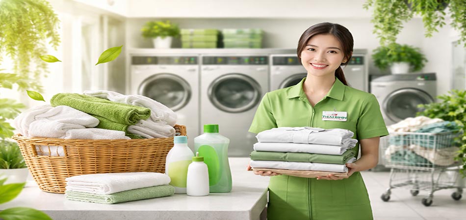 Nhiều dịch vụ giặt sấy cao cấp sử dụng công nghệ giặt tiết kiệm nước, sử dụng hóa chất thân thiện, xử lý nước thải hiệu quả — điều mà máy giặt gia đình khó đạt được.