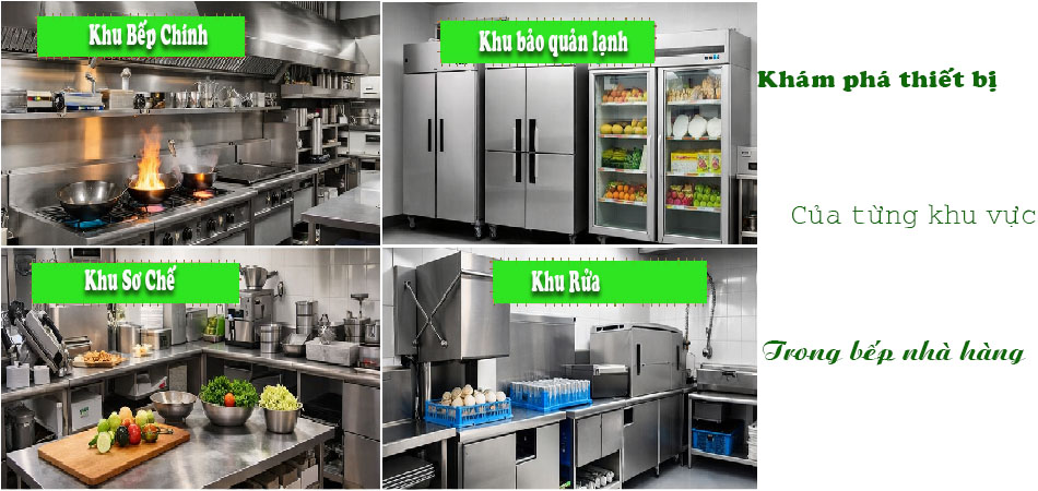 Khu nấu chính ( bếp chính ) là nơi trực tiếp tạo ra món ăn. Vì vậy đây là nhóm thiết bị bắt buộc phải đầu tư đầu tiên. Gồm các thiết bị chính sau: